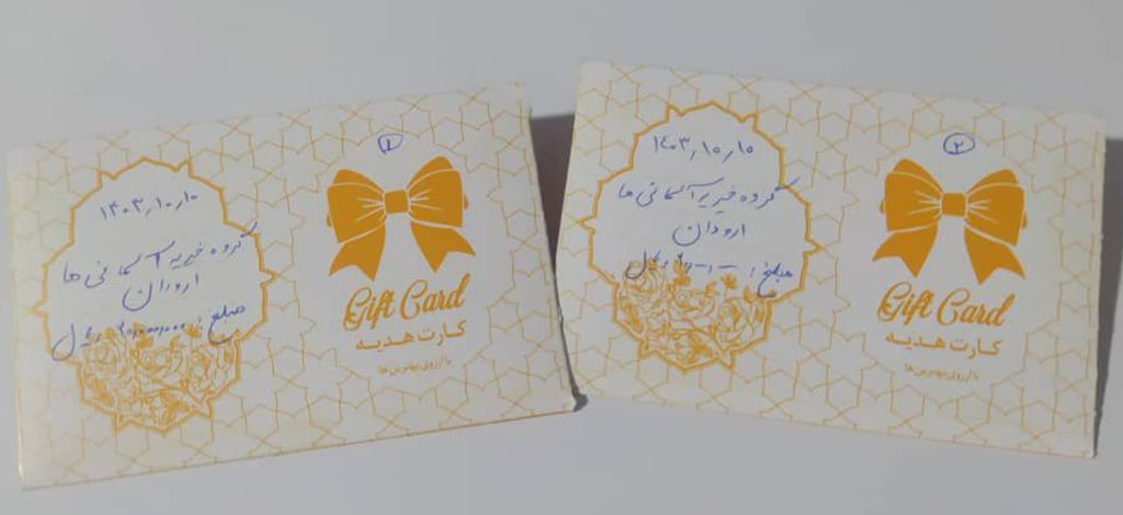 با کمک شما خیرین گرامی مبلغ 4 میلیون تومان جمع آوری و در قالب 2 کارت هدیه به دو مادر سرپرست خانواده در دهستان ارودان تقدیم گردید.
